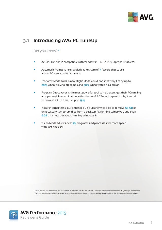 AVG PC Tuneup 2011 © 2010 Copyright AVG Technologies CZ, s.r.o. All rights reserved. 5 2. AVG PC Tuneup Features Disk Cleaner Removes junk files slowing down your computer Disk Defrag Defragments disk drives and Repair button to fix all problems immediately. ... Retrieve Full Source